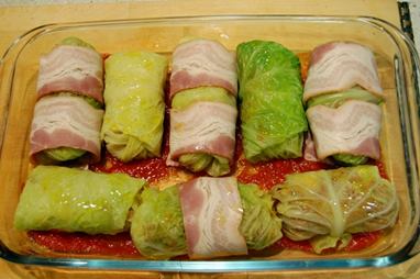 1.- Comenzamos cociendo las hojas grandes de repollo con agua con sal durante unos 8 minutos y durante la coccion vamos quitando las hojas pero que vayan cociendo todas las que vamos a necesitar.